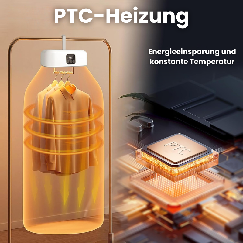 Dieser tragbare Trockner ist ein Wendepunkt. Er ist kompakt, leicht und trocknet die Kleidung gründlich. Die Fernbedienung macht die Nutzung noch bequemer.