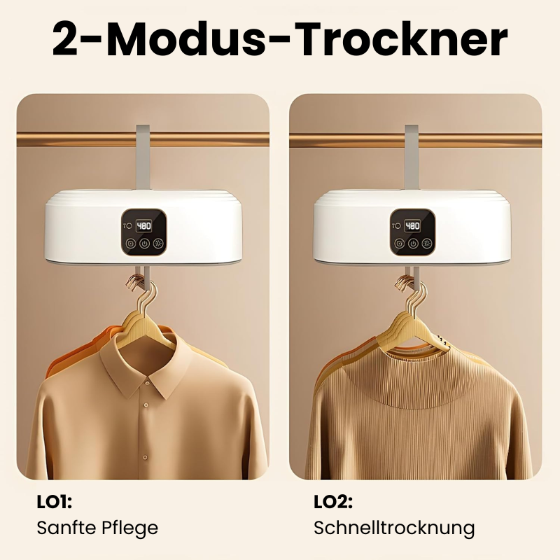 • Zwei-Modus-Technologie: Bietet zwei Trocknungsmodi für verschiedene Stoffe – sanfte Pflege für empfindliche Materialien wie Seide und Wolle sowie schnelles Trocknen für strapazierfähige Stoffe wie Baumwolle und Polyester.